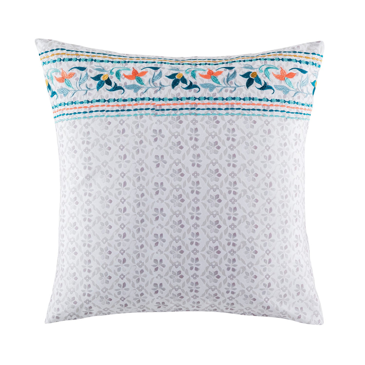 The Vernie euro style pillowcase features an understated floral design printed in grey and finished with embroidered detailing. Complete the look with the Vernie quilt cover set.